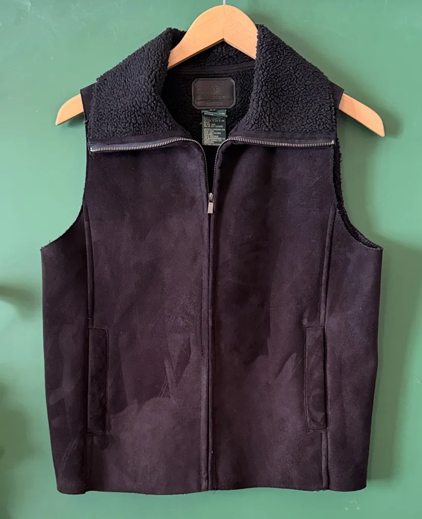Elegant black vest with soft fleece texture. Ideal for layering. pit to pit 20" length 23"