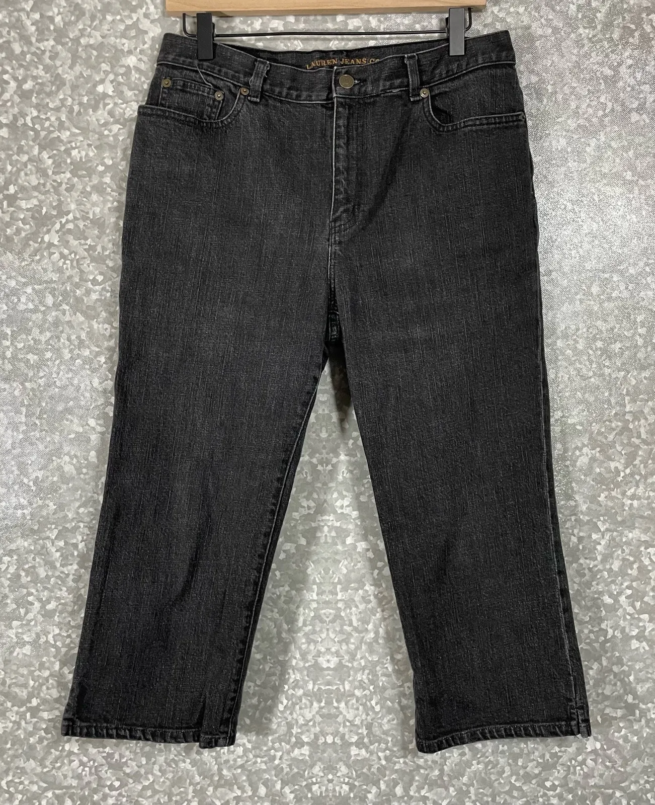 Women's crop jeans by Lauren Jeans Co for Ralph Lauren. These black jeans have a mid rise waist, st... Show more