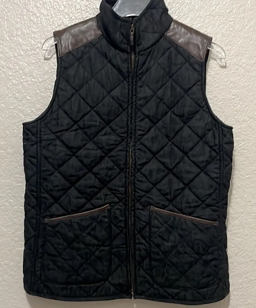 Lauren Jeans Company Premium Western Quilted Denim Vest With Leather Trim Size Medium DarkDenim Al... Show more