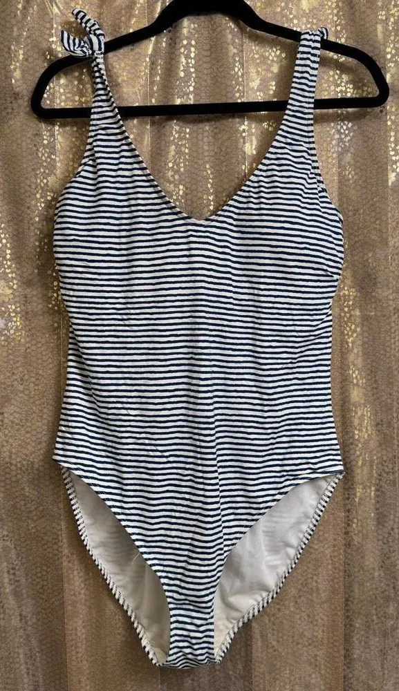 LAUREN Ralph Lauren Blue Striped Lace Up Back One Piece Swimsuit Size 16 Great gently used conditio... Show more