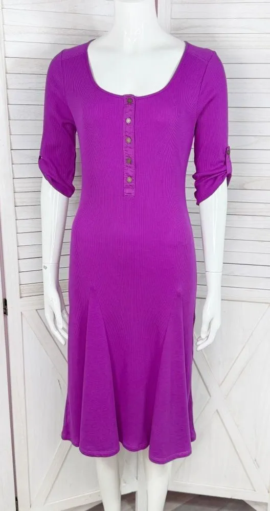 Lauren Ralph Lauren Ribbed Jersey Knit Henley Fit Flare Dress Purple Size XS Electric purple col... Show more