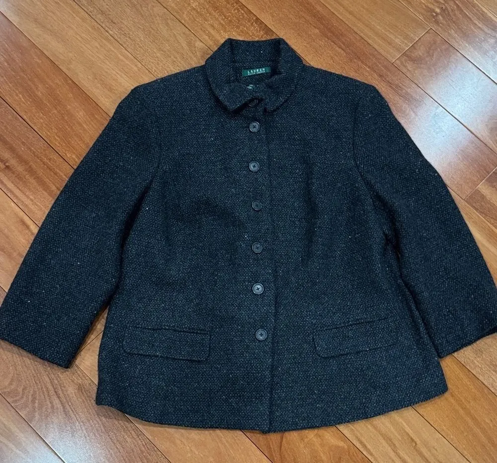 Lauren Ralph Lauren Women's Wool Blend Button-Up Jacket Black Charcoal Size 18W in excellent conditi... Show more