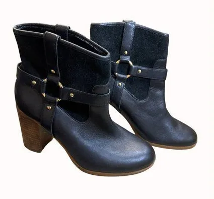 Elegant black leather ankle boots by Ralph Lauren, designed for a stylish and comfortable fit. Perfe... Show more