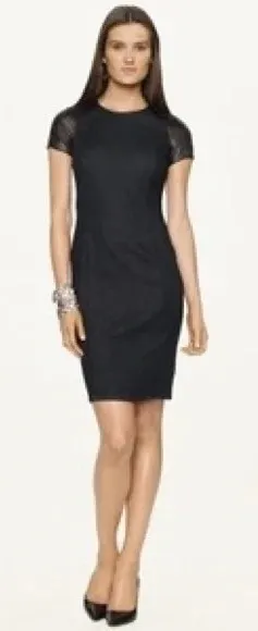 NWT 8 Lauren Ralph Lauren Women’s Denim Crew Neck Sheath Leather Formal Dress. Size: 8 Original pri... Show more