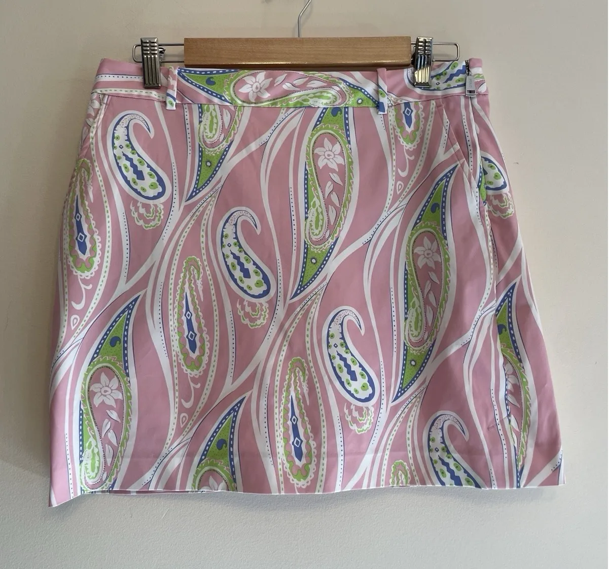 Ralph Lauren Polo Golf Skirt/Skort. Women Size 4. Pink Paisley print. Active Tennis Pickleball Golf Walking. Lined, includes built-in shorts. Zipper and button closure. Front pockets. Used/preowned, good condition. tags: preppy, tennis, golf