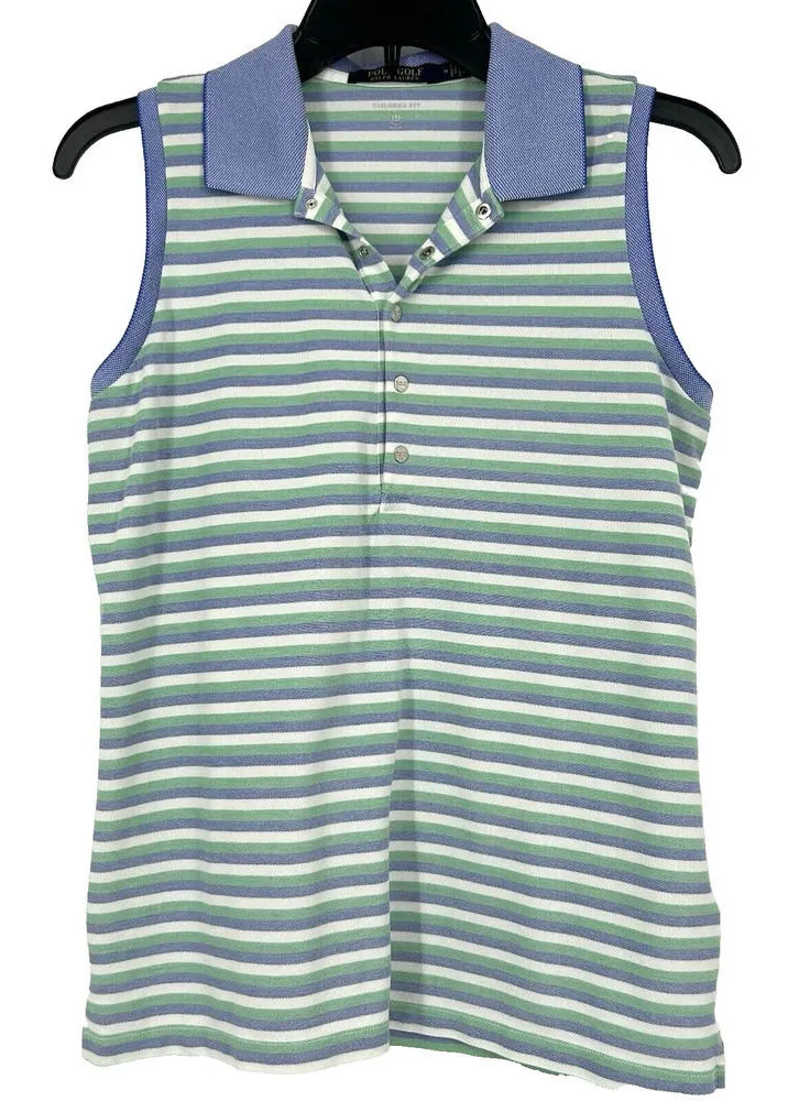 Ralph Lauren Polo Golf Womens Tank Top Blue Green Stripe Tailored Fit Size M Measurements (approxim... Show more