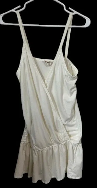 Effortless charm defines this Ralph Lauren Polo Jeans Co. top, a delightful addition to your wardrobe. This cream-colored top features a flattering wrap-style front and delicate spaghetti straps, creating a breezy and comfortable fit. The playful ruffle hem adds a touch of whimsy, while the included beaded belt cinches the waist for a defined silhouette. Perfect for a sunny brunch with friends, a casual day out exploring the city, or a relaxed evening gathering. Approximate Flat Lay Measurements: Pit to pit = 16" Waist = 29" Length = 15" Style: Wrap, Draped goddess, Color: Beige, cream Occasion: Casual, Party/Cocktail, Travel Material: Cotton, Cotton Blend Neckline: V-Neck, wrap Fabric Type: Jersey Character: Boho, Casual, Summer, Chic Season: Spring, Summer Keywords: Ralph Lauren Polo Jeans Co., cream top, ruffle hem, spaghetti strap, wrap top, casual top, summer top, boho top, beaded belt, sleeveless top, size M, women's top, women's blouse, Y2K