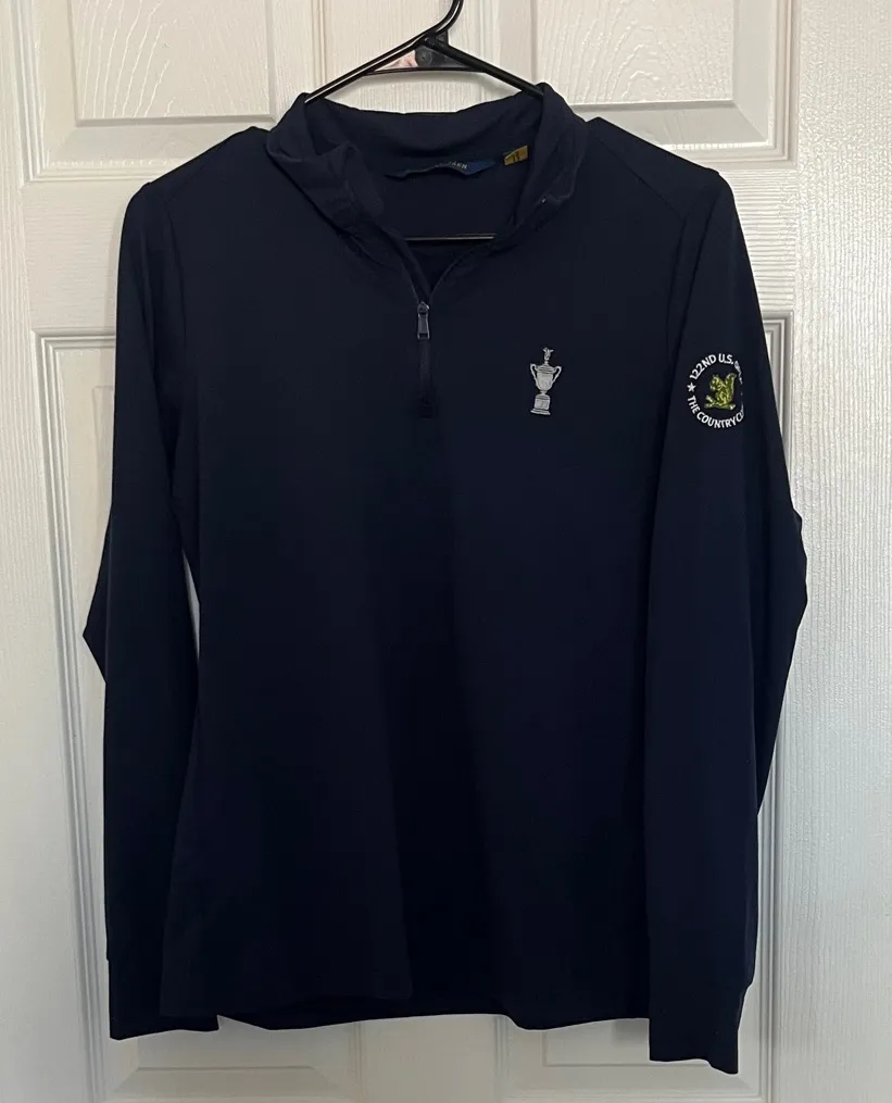 Classic navy quarterzip with signature Ralph Lauren branding. Ideal for everyday comfort.
