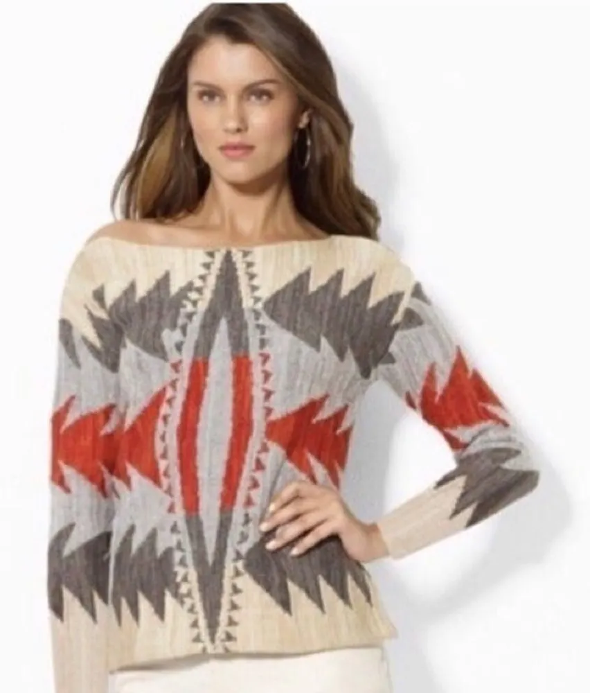 This is a vintage Ralph Lauren wool blend Aztec sweater. It is a petite large but fits more like a m... Show more