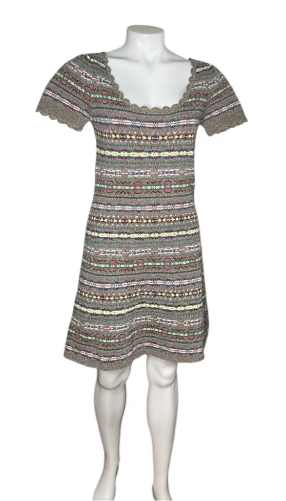 Adorable dress with a grey and multicolored stripe pattern and scalloped edge around the collar and at the edge of the sleeves. Wool blend with primarily lambswool, some wool, and merino wool. The Rugby line from Ralph Lauren was manufactured between 2004 and 2013. Preowned, with no apparent flaws. Approx measurements, 16” underarm to underarm, 15” across waist, 35” long. ✅ Same or next business day shipping ✅ Bundle & save!