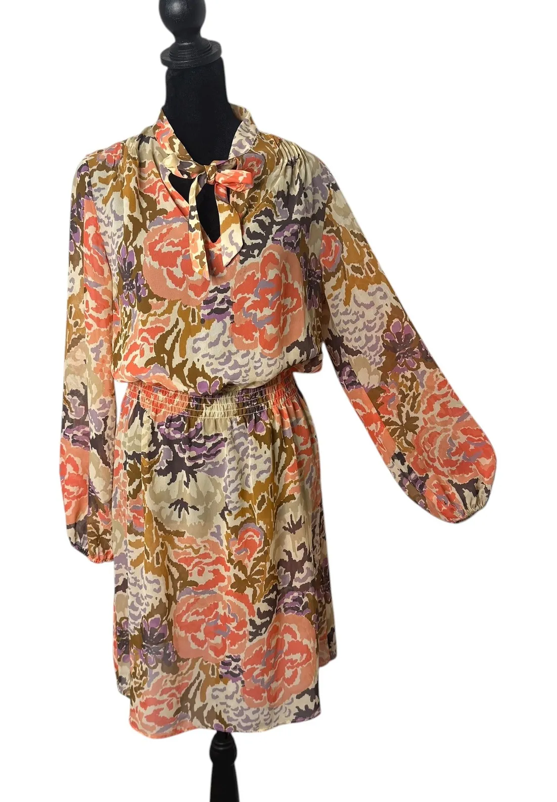 Ralph Lauren Sheer Smocked Waist Short Dress Womens Size 4 Floral Tie Neck **Can See Through Pre... Show more