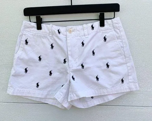 White chino shorts Navy polo logo throughout In good condition Size 2