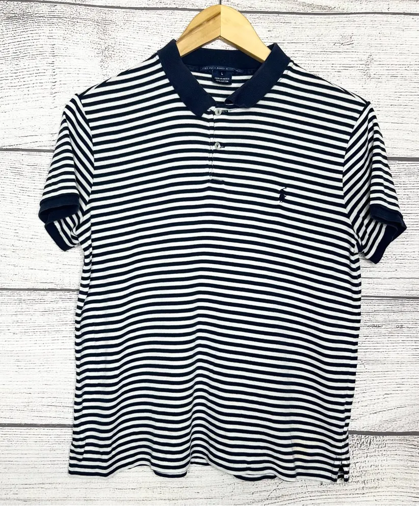 Ralph Lauren Sport Navy Blue & White Striped Women’s Polo Shirt Women’s Size Large Approximate fl... Show more