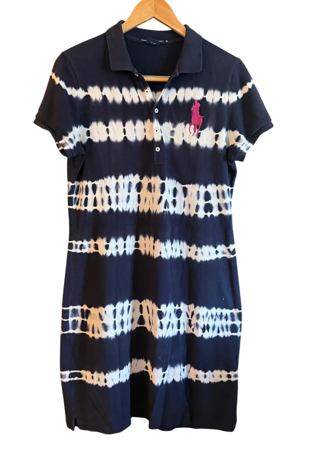 RALPH LAUREN SPORT | Navy Blue Big Pony Polo Tie Dye Short Sleeve Polo Dress Classic Polo Pique Nav... Show more