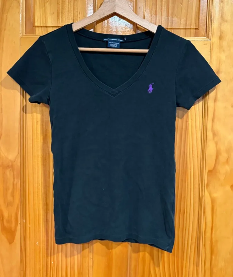 Classic Ralph Lauren Sport tee in black with embroidered purple pony logo. Soft 100% cotton with a f... Show more