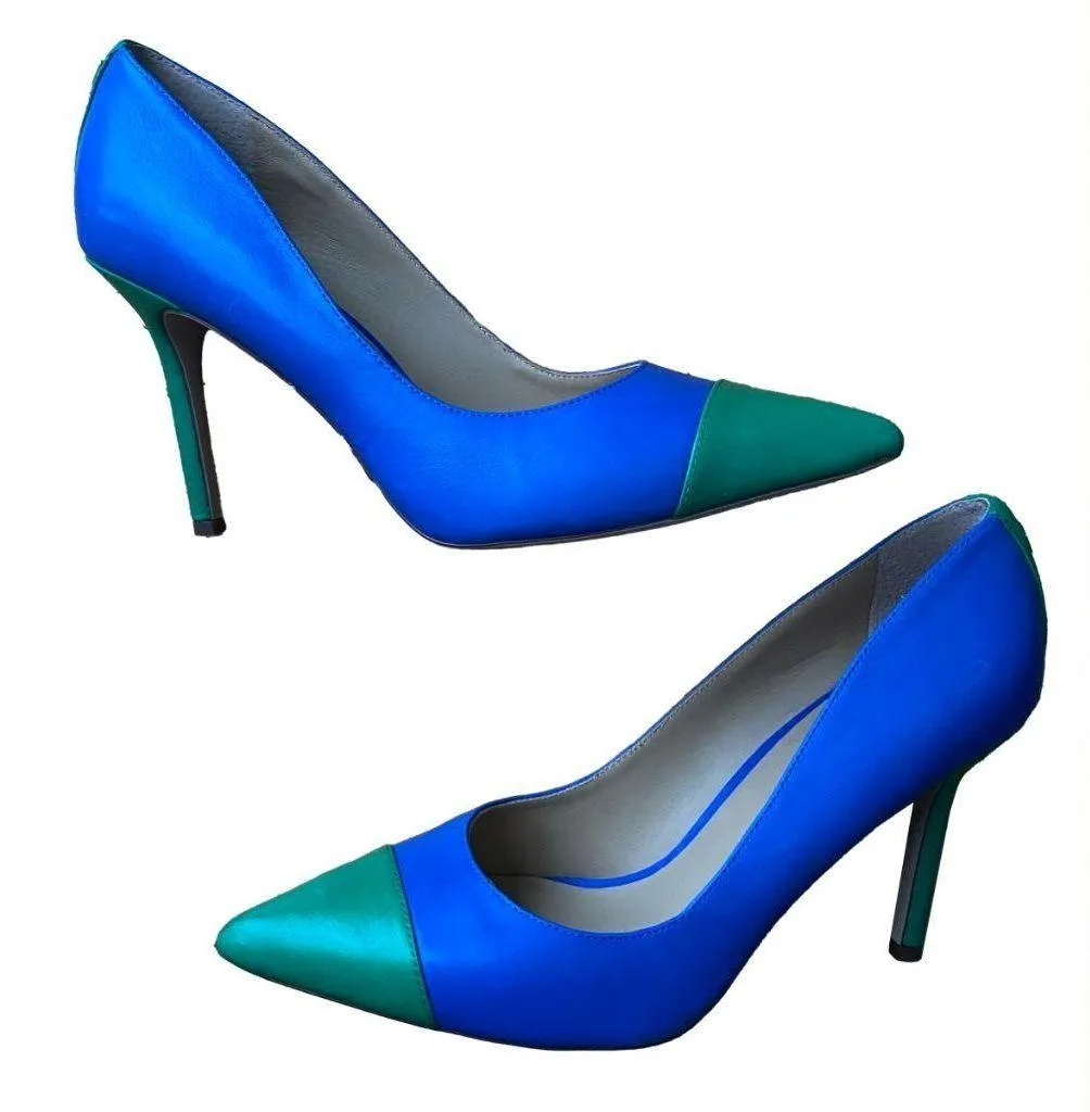 - Never worn, only tried on - Pointed toe - Blue and Green colorway with a gold Ralph Lauren logo on the back - Leather lined - 3 inch heel - Size 8.5 Women's - Send me offers and any questions!!