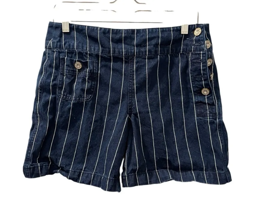 Step into nostalgia with these Vintage 90's Lauren Jeans Co. Pinstriped Button Fly Denim Shorts. Per... Show more