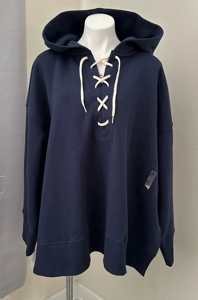 Ralph Lauren Lace-up Fleece Hoodie Size M/L Women Cruise Navy Relaxed fit. Intended to hit at the... Show more