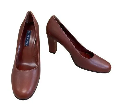 A classic and elegant choice, these Ralph Lauren leather heels feature a comfortable 3-inch block he... Show more