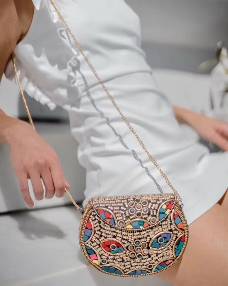 RAMLA Rio‎ mosaic handcrafted gold multicolor shoulder bag clutch new - $90 - From Brittnie