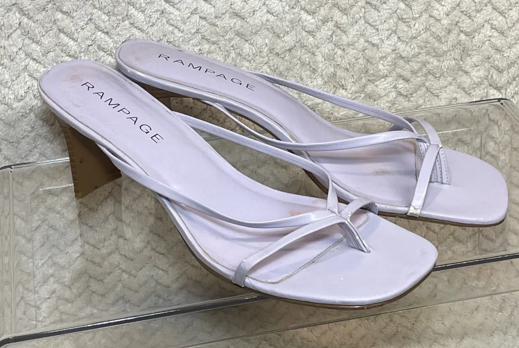 Rampage Light Purple Strappy Kitten Heels Women Size 8.5 Glam EuroSummer - showing some wear on the... Show more