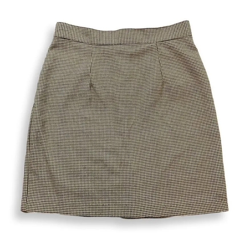 Rampage Skirt Y2K Womens 11 Houndstooth Preppy Black Tan Academia Made USA VTG • Button & Zipper Cl... Show more
