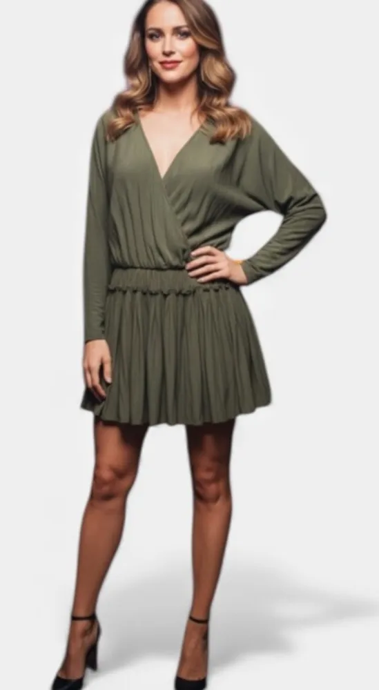 RAMY BROOK Sage Green Long Sleeve Pleated Gathered Dress Size S - $78 - From Iris