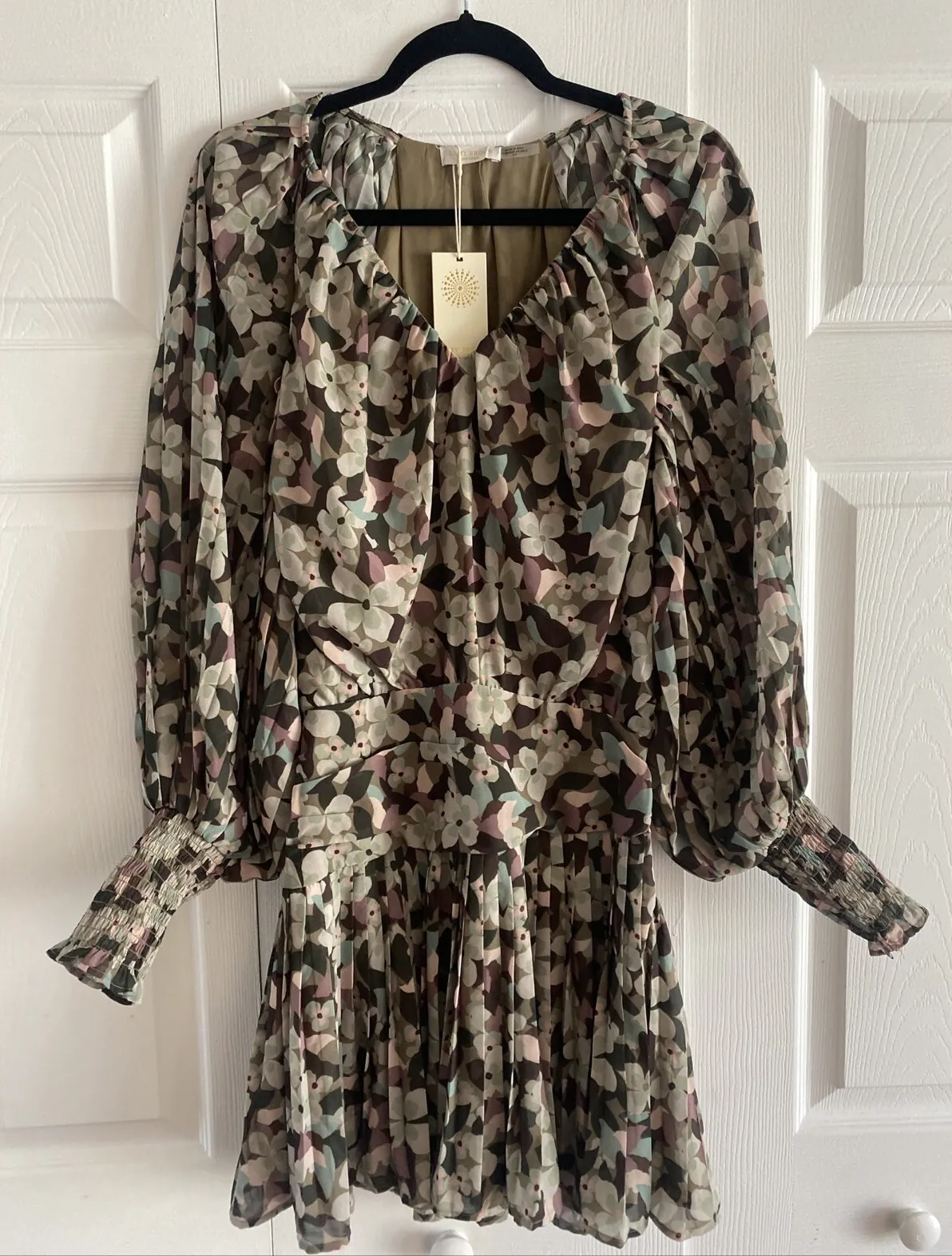 Ramy Brook Women's Small Olive Printed Maggie Dress Sheer Sleeve NEW MSRP 445 Green - $98 New With Tags - From Arielle