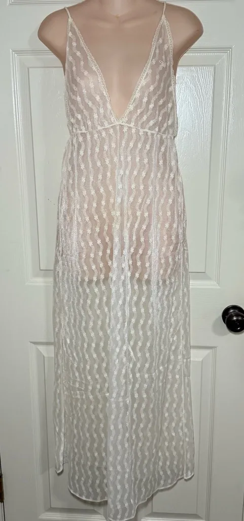 Beautiful sheer lace maxi gown. A couple small spots and hole at bottom. Please see photos. Brand:... Show more