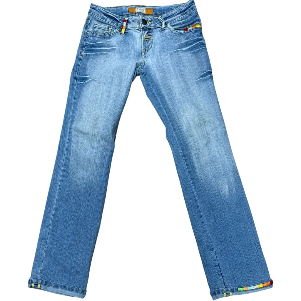 Rare Alevìd Jeans A&D Light Wash Straight Leg Denim Rainbow Trim Y2K Boho Size 6 Step into standout... Show more