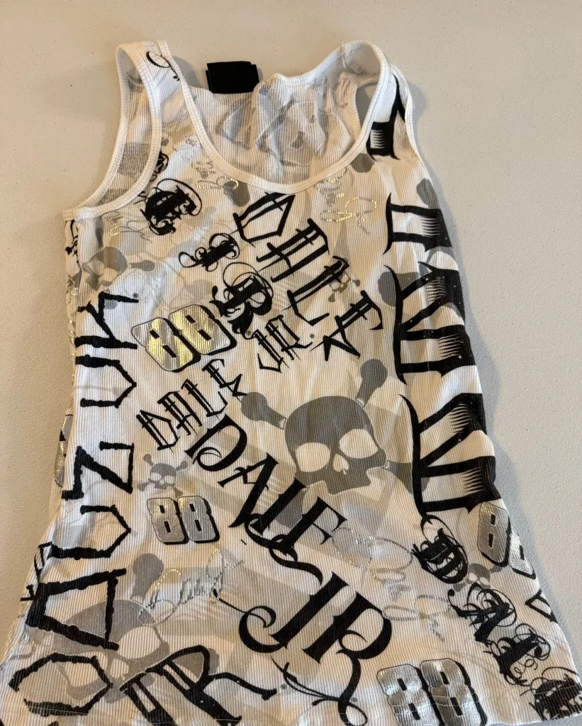 RARE Chase Authentics NASCAR Medium Dale Jr Tank Top Skulls Women’s 88 Shirt White - $28 - From Nina