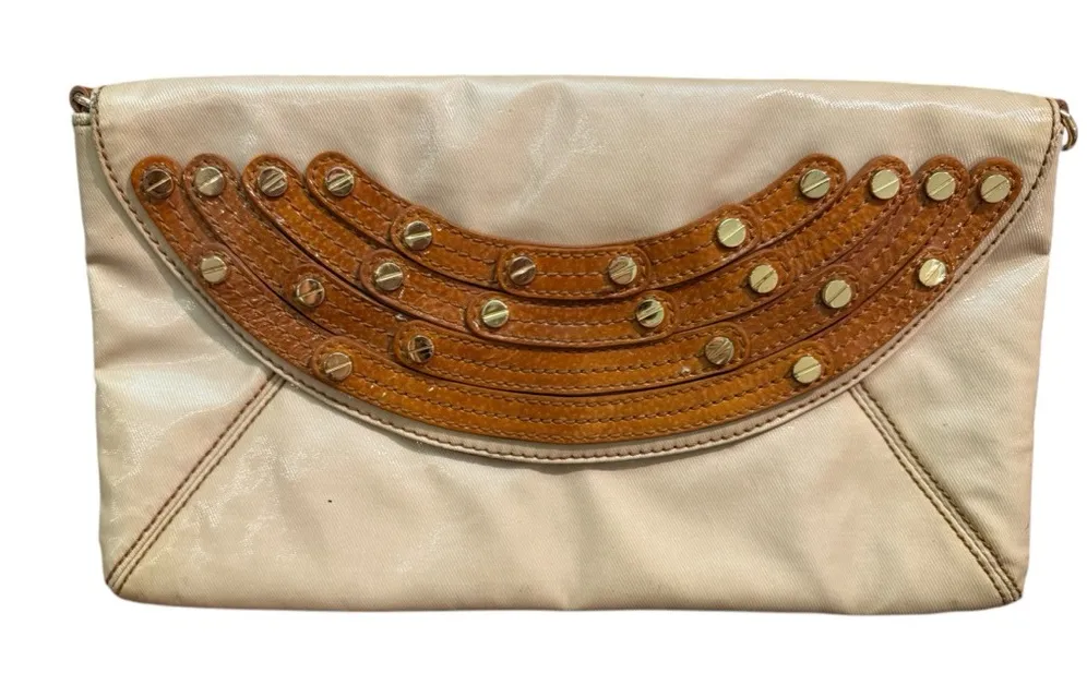 Rare Tory Burch Beige / Brown Clutch Gold detail Envelope Style magnetic clasp. Crossbody chain not... Show more