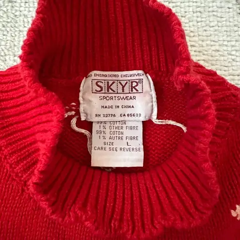 Indulge in this vintage holiday sweater with a festive fireplace scene complete with a warm hearth and stockings hung by the chimney with care! Features bold colors and a full holiday tableau, mock turtleneck and slight puff shoulder - with white snowflake-like polka dots on the back. Win your holiday sweater contest this season! Slight color transfer as seen in last photo - hard to see when worn! Tags: holiday, ugly sweater, festive, fireplace, christmas, sweater BRAND: Skyr Sportswear SIZE: Large STRETCH: YEs CONDITION: Vintage, pre-owned, very good COLOR: Red/Multi FLAWS: No LINED: No Approx measurements can be found in photos or are posted in listing; measurements are taken flat. Model (if included in non-stock photos) is 5'1" typically a S, XS, 0-2 Reasonable offers welcome! Ships 1-2 Biz days! Msg with any questions!