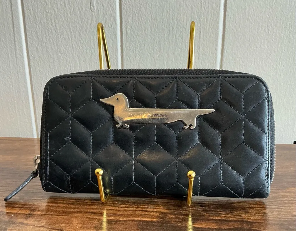 Rare Vintage Quilted Soft Leather Gilli Zip Around Rare Dachshund Wallet Black - $58 - From Luna Little Trunk