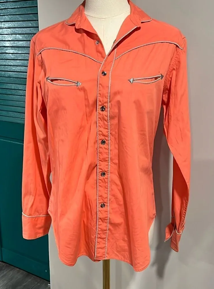 RARE vintage Ralph Lauren western wear bright peach pearl snap western top 12/M Marked as 12, assume... Show more