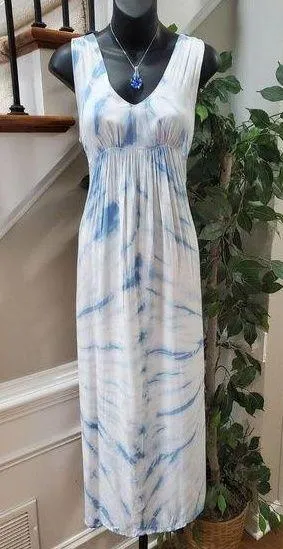 . Product Detail • Brand : Raviya • Size: S • Color: White & Blue • Material: 100% Rayon • Type: Maxi Dress • Department: Women's • Neck Style: V Neck • Sleeve Length: Sleeveless Please message me if you have any questions. I stand by all of my items before and after purchase. Please see my feedback.