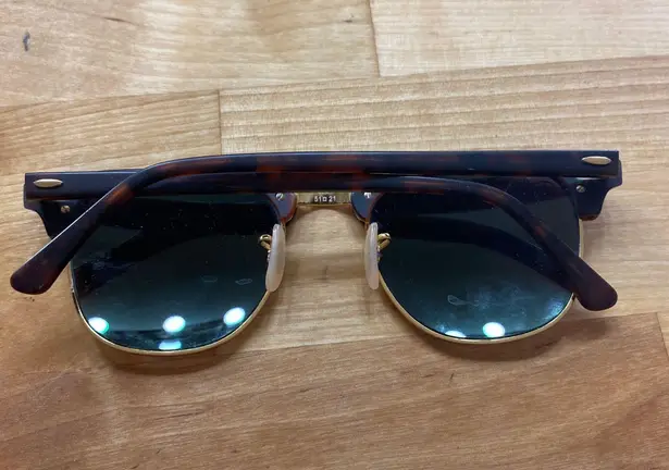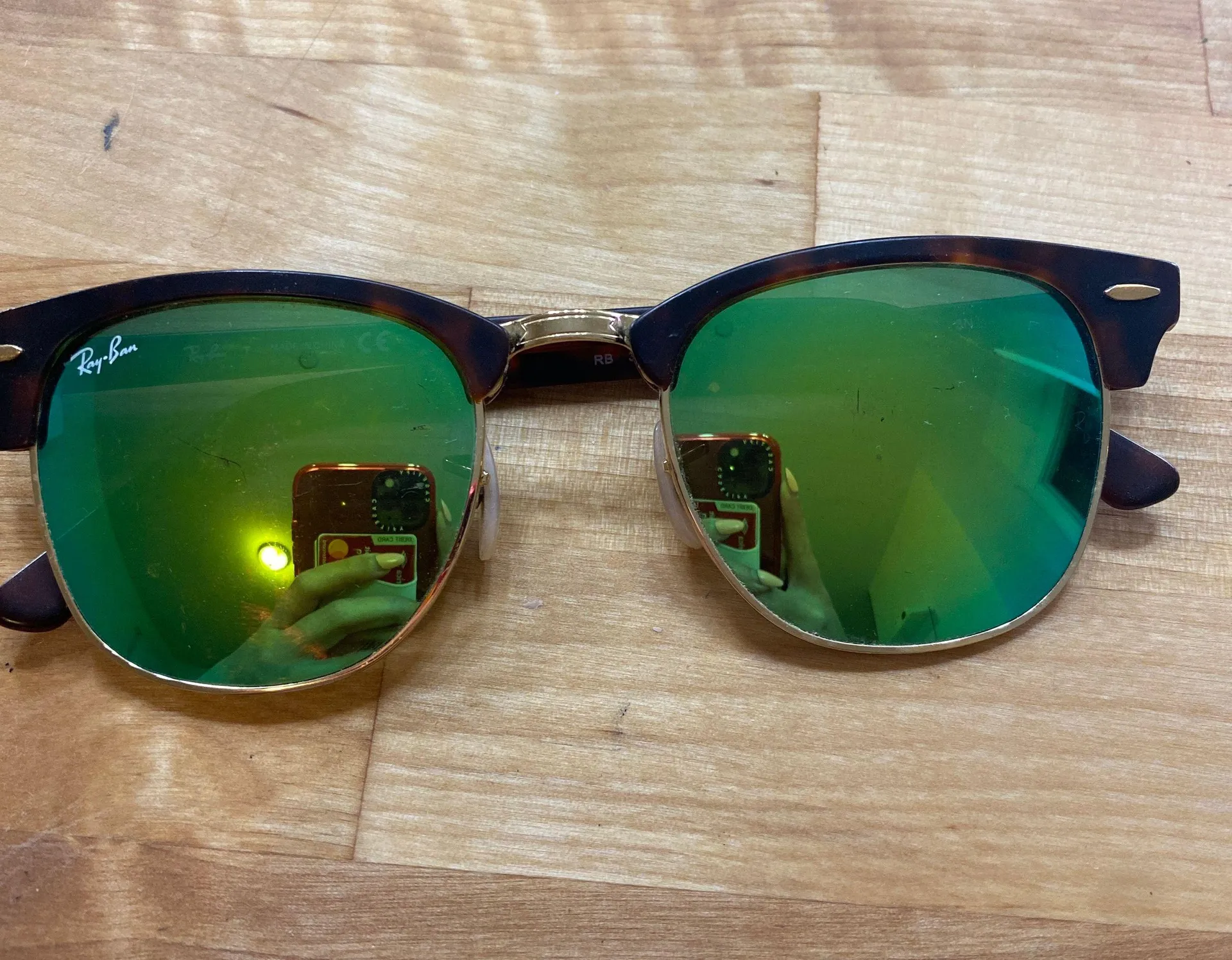 Green lenses, tortoise frames. A couple scratches on the lenses, not very noticeable once on
