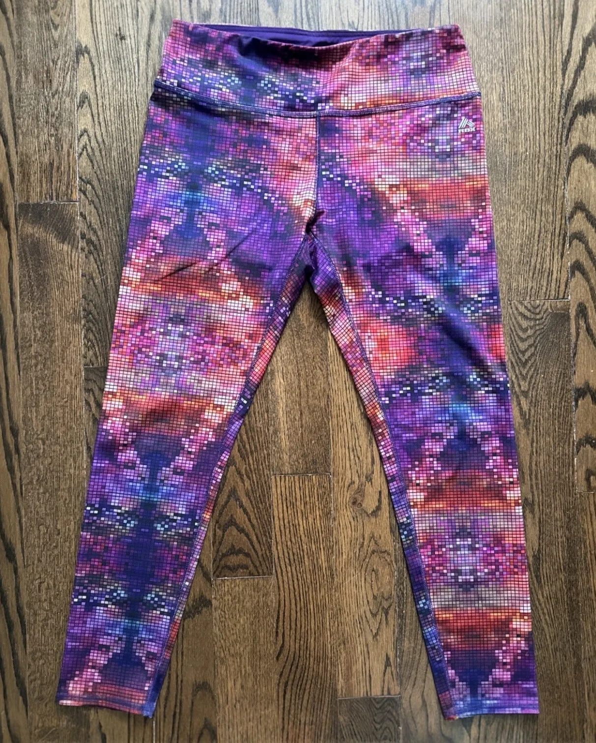 Preowned in excellent condition. These RBX Live Life Active leggings feature a vibrant purple abstra... Show more