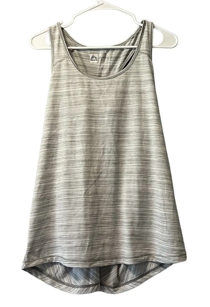 This tank top is pre owned and in really good condition! RBX Performance Tank Top Women's Size Large Sleeveless Gray Athleisure Yoga Gym ***Please be advised, color may appear more vibrant, lighter/darker in pictures due to flash, contrast, lighting or your phone/computer screen set up, etc. I try to described color as best as possible. I do check every item very closely while taking pictures and while packing it for shipping but it is very easy to still miss a stain or small damage. So please, if you receive an item with a defect not mentioned on the description, message me and I will do my best to fix the problem. Thank you! This item is pre-owned. Any questions please don?t hesitate to ask.