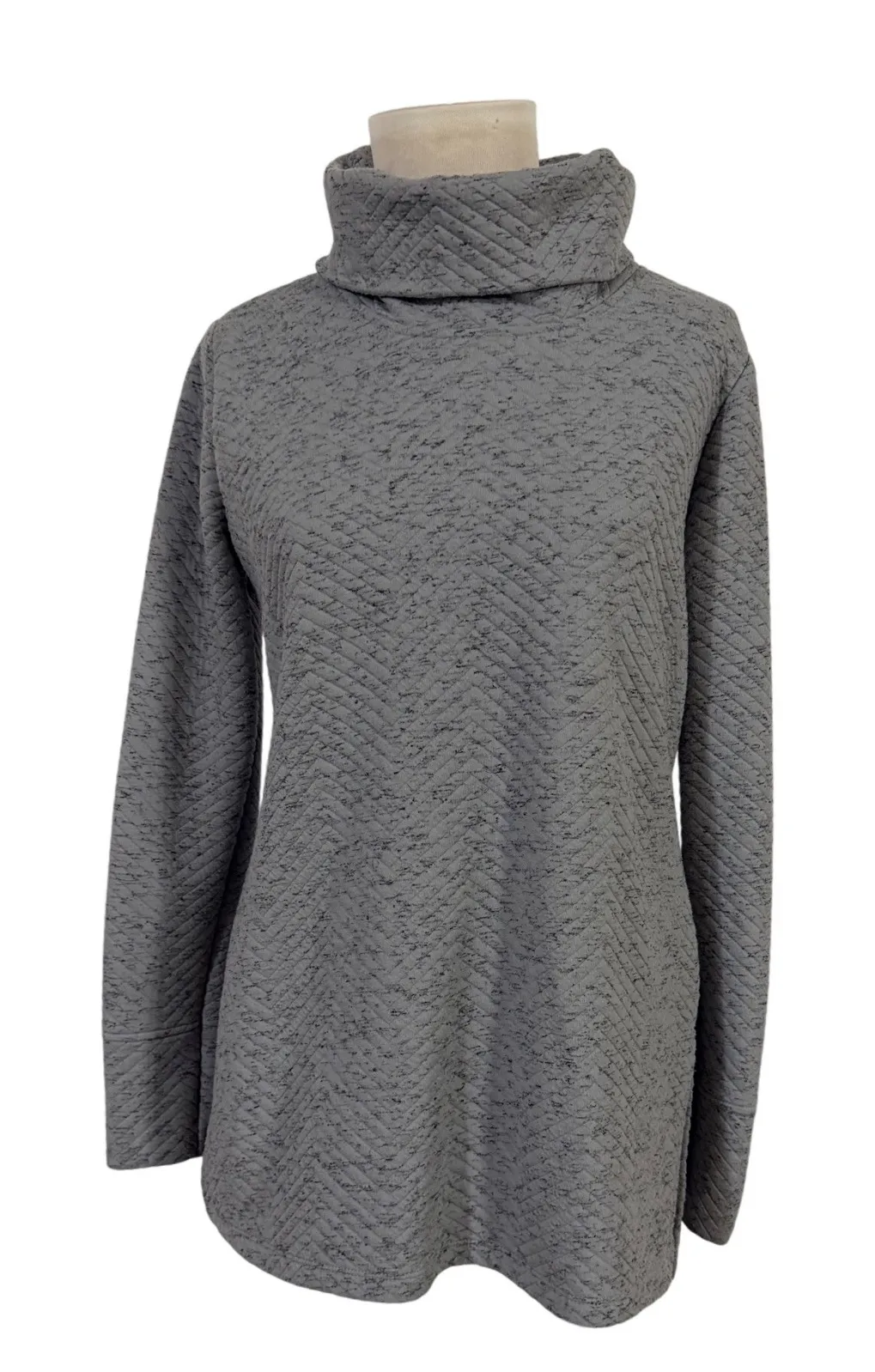 RBX gray long sleeve turtleneck tunic top. Overall good condition, ladies size medium Style: Tunic Department: Women Material: 100% Polyester Neckline: Turtleneck Type: Sweater Sleeve Length: Long Sleeve Features: Stretch, Breathable Pattern: Geometric Fabric Type: Knit Accents: Quilted Keywords: tunic, turtleneck, quilted, chevron, long sleeve, athleisure, cozy, layering, casual, weekend wear, modern, textured