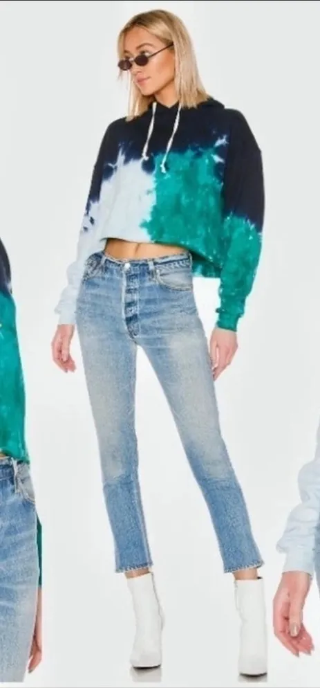 Excellent Pre-Owned Condition No Flaws Size Small See pics for measurements 100% cotton Adjustable drawstring hood Tie dye fabric with fleece lining Ribbed sleeve openings Frayed bottom hem Made in USA Manufacturer Style No. 012 5WCRHH Cut# 3325 Style# 012–5WCRHH Wash Name : teal tie-dye Size Small Revolve, beachy, summer, beach, tie dye, FWRD Questions? Leave a comment below!