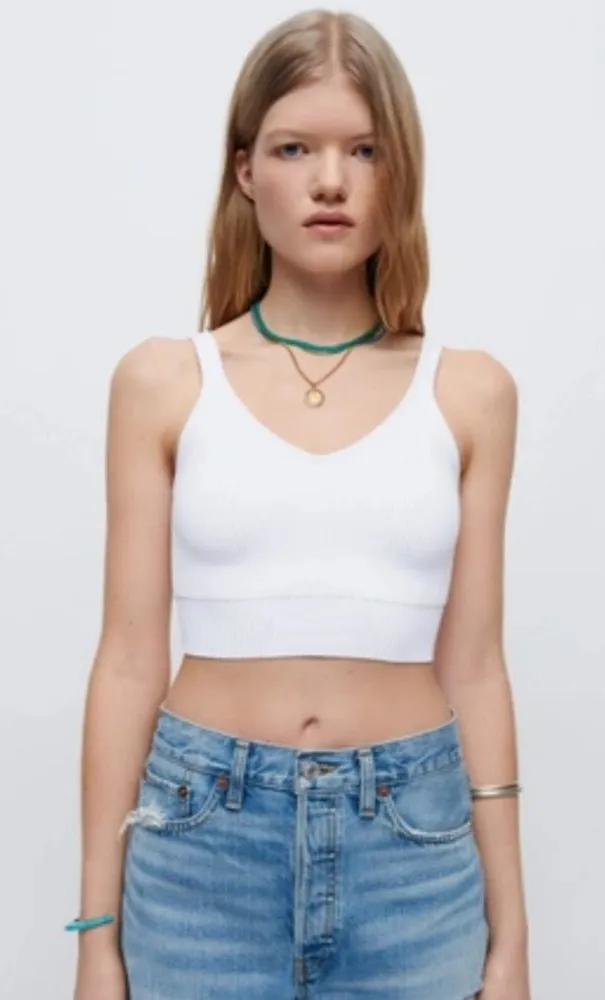 Stylish white ribbed crop top by Re/Done. Ideal for casual wear. 90s crop top amazing condition and... Show more
