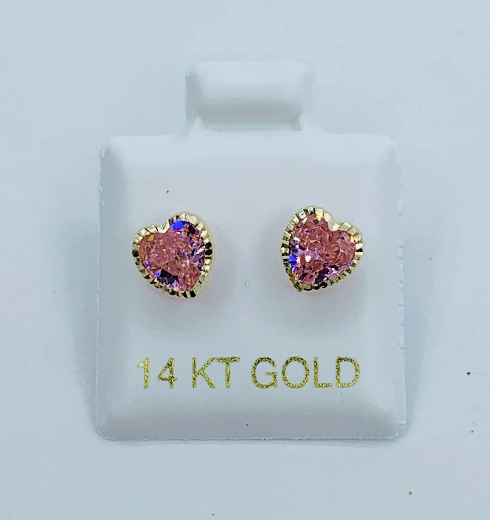 Real 14k Gold Studs Earrings Pink Heart Pink Cubic Zirconia 6mm heart Screw Back Girl Women Toddle... Show more