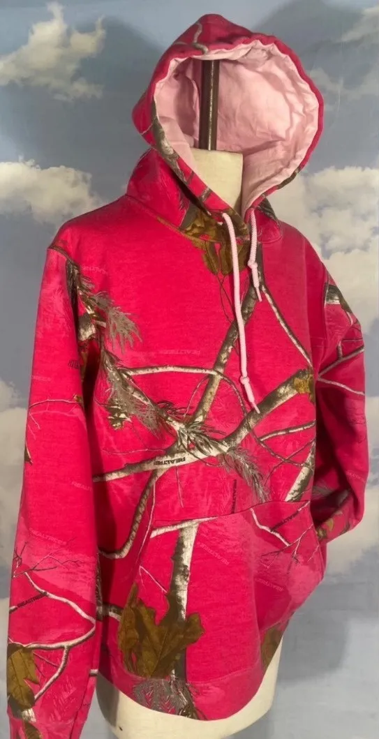 The Realtree Hoodie for women in size small is a warm and stylish outdoor sweatshirt in pink camoufl... Show more