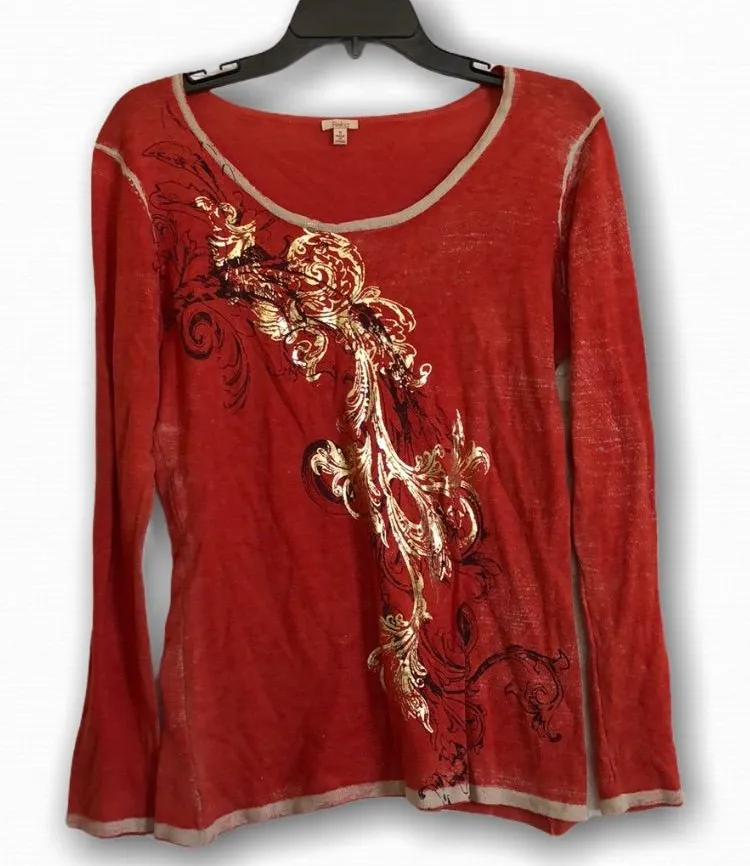 REBA Orange gold swirl lightweight sweater top long sleeve women’s‎ size S - $12 - From Diana