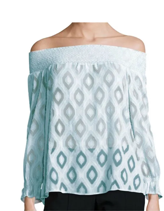 *GREAT CONDITION!!* Rebecca Minkoff Geo Print Off the Shoulder Atmosphere Top in Light Blue size S... Show more