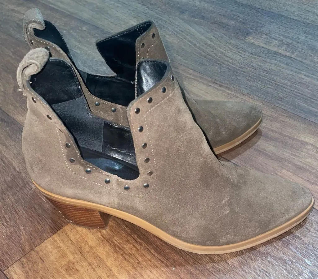 The Rebecca Minkoff Lana Taupe Suede Split Shaft Ankle Boot in size 7.5 is a stylish and versatile s... Show more