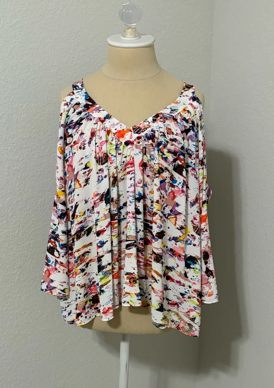 Rebecca Minkoff Multicolor Abstract Cold Shoulder 3/4 Sleeve Blouse Multiple Size M - $23 - From Kelsey