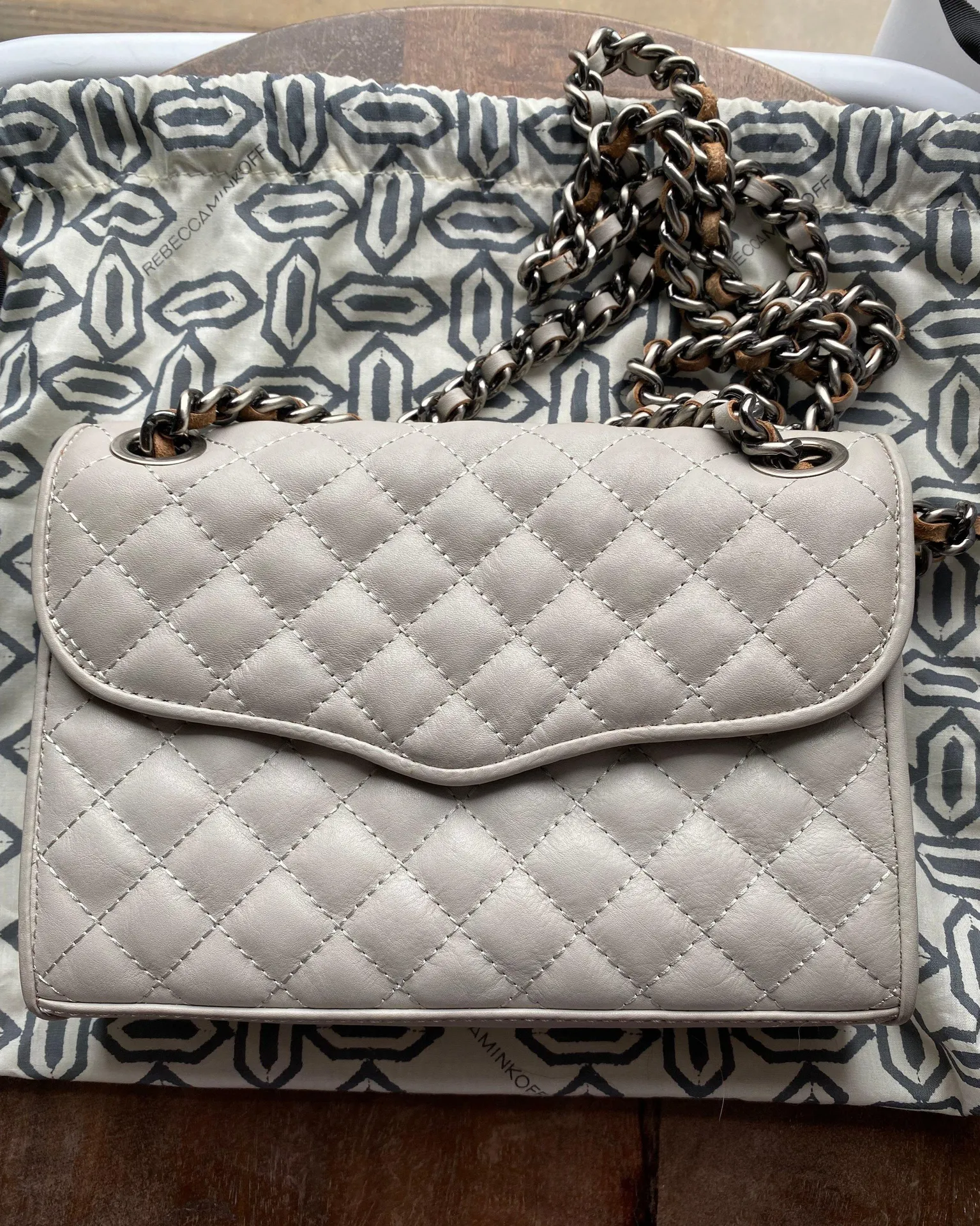 Pre-loved Good condition Quilted details at the front Silver/hardware Comes with dust bag