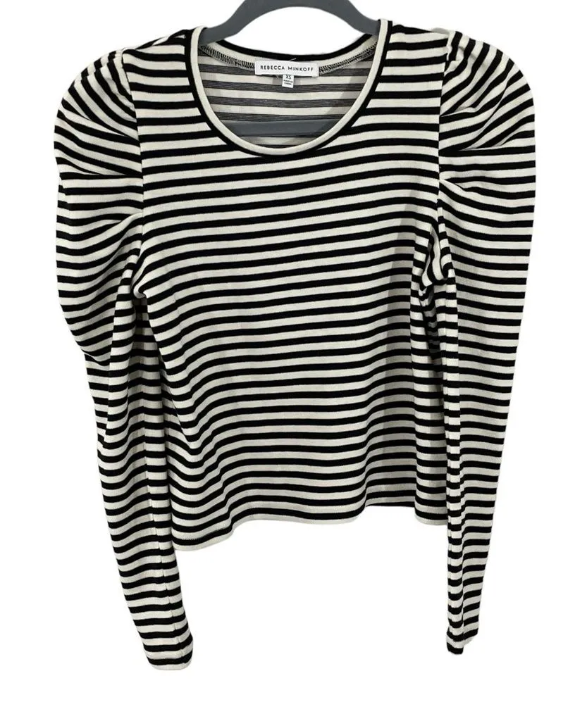 Rebecca Minkoff Talia Stripe Long Puff Sleeve Black and White Women's Size XS in great condition L... Show more